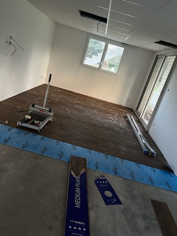 Rénovation du sol avec un revêtement LVT et peinture mural intérieur pour rafraichir la pièce.